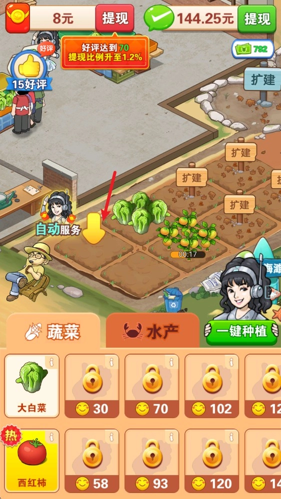1在游戏里,只要点击空地就能开展种植活动,从而为菜市场供应足够的货源。