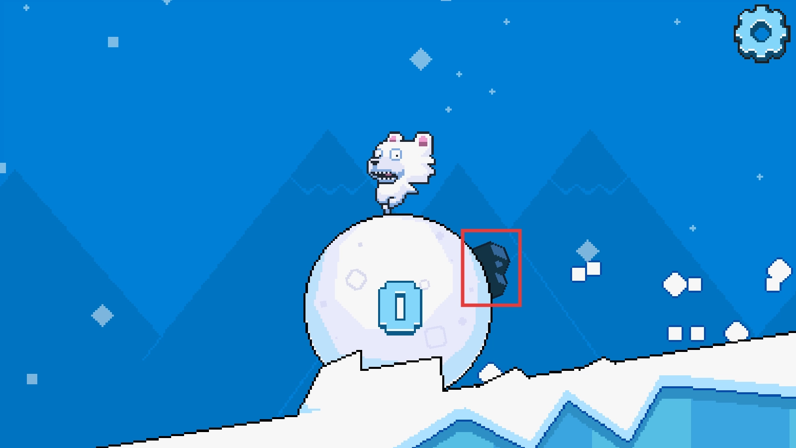 1、控制小熊奔跑:小熊呆在雪球上随其向前滚动,玩家需通过操作让小熊保持平衡,避免跌落,持续向前奔跑以延长游戏时间。