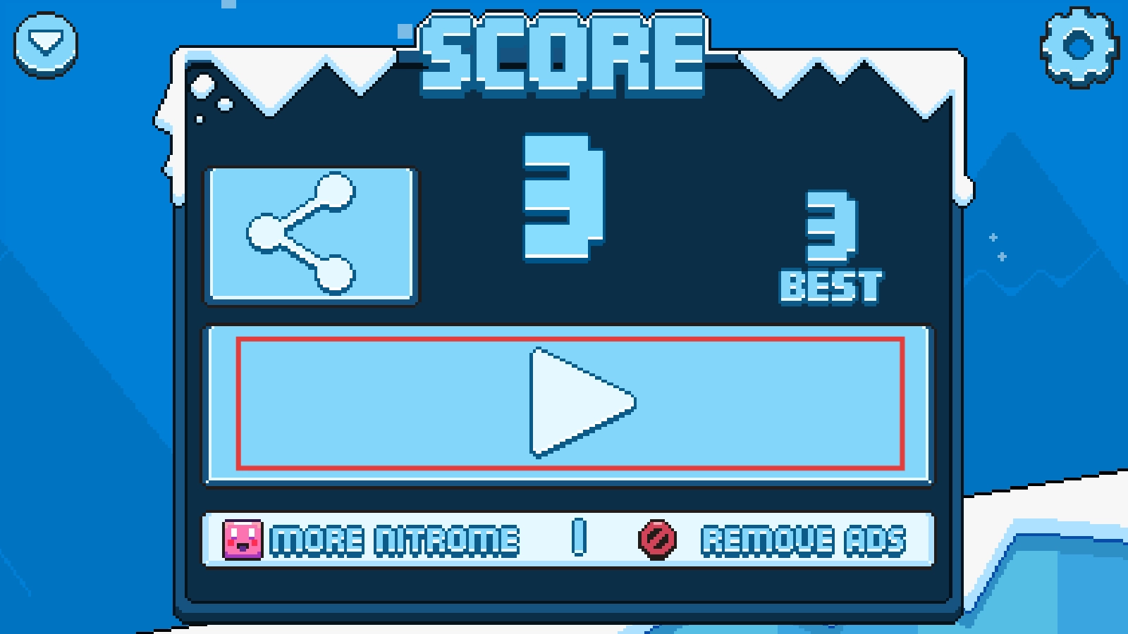 4、跑酷结束后,在【SCORE】界面,点击箭头按键,可以重新再体验雪球上的跑酷哦。