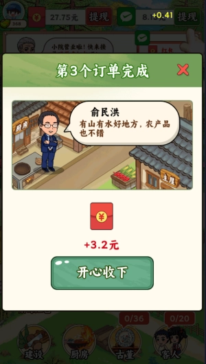 这是一款满溢田园气息的模拟经营游戏,你能凭借辛勤劳作完成一个个订单,进而收获丰厚红包,趣味十足!