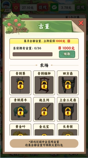 8、游戏中还有着古董和客人两种图鉴,完成都能获得1000的红包,但是难度相当大,基本上不可能完成。