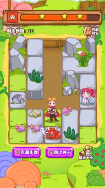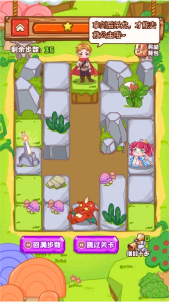 通过滑动或点击移动方块,调整勇者、宝剑、恶龙和公主的位置。