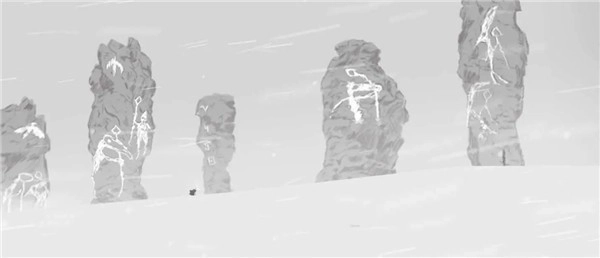 后面你会来到一个雪山,山上有个巨人雕像,这个巨人雕像的头也分为三圈,而且会一直转转转!你可以通过三个石柱来放慢其对应的圆环的转速(从左到右分别是外中里)~将其头像拼成一个正常的人脸后,就通关了!