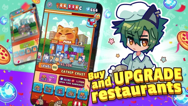 打造专属您的披萨店,按您心意随心定制。招募一群技艺高超且个性独特的猫咪厨师,看它们亲手炮制出令人馋涎欲滴的美味佳作。从经典的意大利辣香肠口味,到充满异域风情的菠萝金枪鱼口味,选择多到数不清。