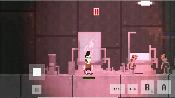 1、当你进入游戏界面,能看到这些按键:B 用于翻滚,A 用于攻击,P 可获取更好武器,M 则是调出功能界面。