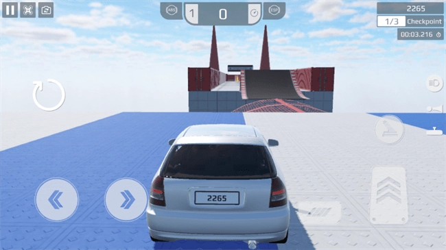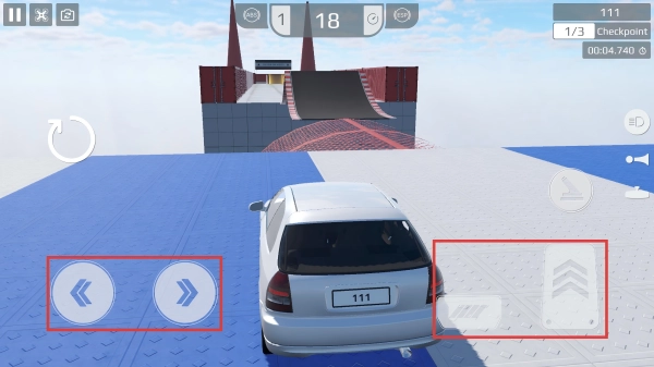 1. 当开始挑战,通过左侧按键操控汽车转向,右侧按键负责加减速。要注意,冲上斜坡时周边没有护栏,千万别在高空中掉落啦。