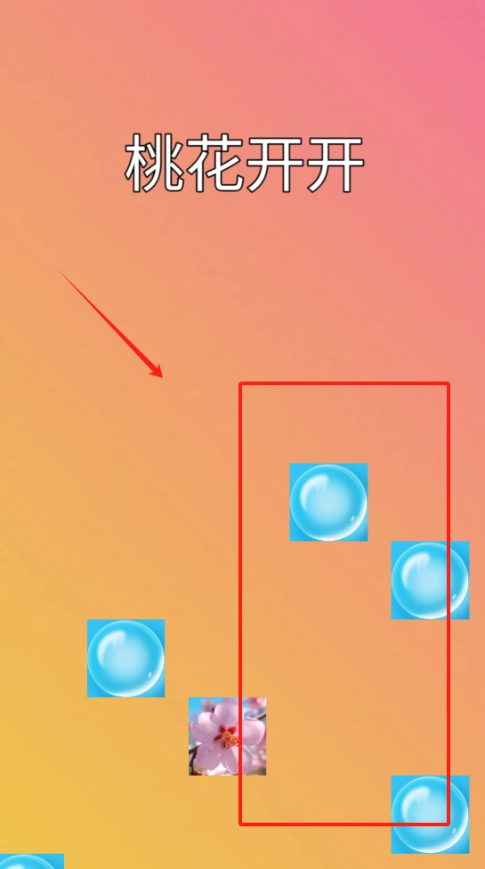 3、画面下方红色框内有蓝色气泡和桃花,点击气泡触发游戏玩法,轻松上手。