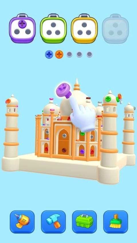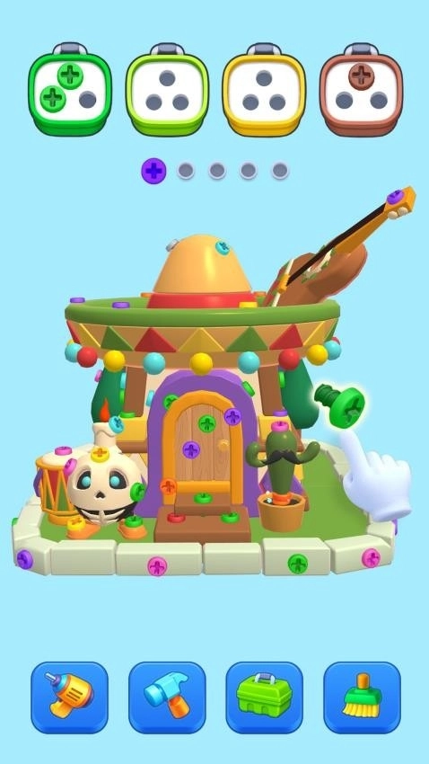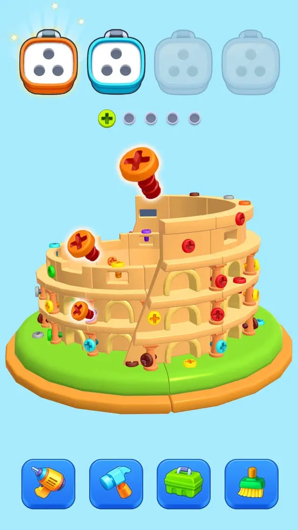 疯狂拧螺丝是一款超欢乐的休闲闯关小游戏。在游戏里,玩家得先仔细观察建筑结构,找准关键的承重螺丝,接着依据螺丝颜色来拆除。只有当相同颜色的螺丝在收纳盒里成功凑齐三连,才能顺利闯关。随着关卡不断推进,还会碰到诸如会爆炸的闪电螺丝、能冻结其他螺丝的寒冰螺丝等特殊道具,让拆除过程乐趣满满。喜欢这款游戏的小伙伴,赶紧来试试吧!