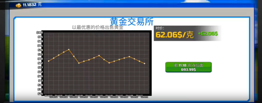 称重后,在价格波动的交易所出售金矿石,选择最佳时机实现利润最大化。