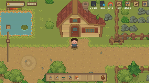 1、初期清理杂草与石块,开垦农田并前往小镇商店购买基础种子与围栏,建立养殖区。
