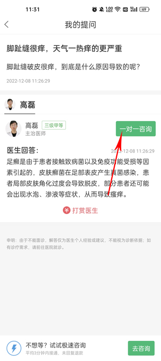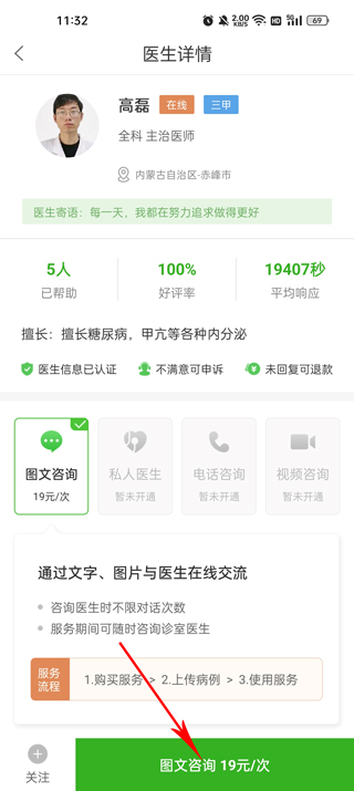 5、进入医生详情之后,点击图文咨询,就可以继续追问了。