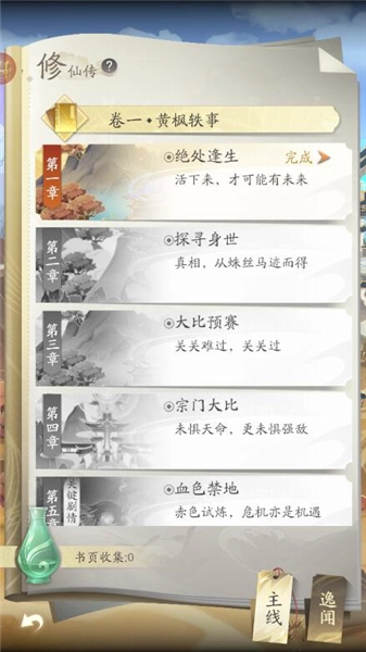 3、按照主线任务走,以尽可能快速升级解更多主线任务为原则,千万别走偏,否则会严重影响升级速度。比方功法修练:初期的任务会倾向多门主修功法平均修练,这时千万别专修一部功法,这样修行进度会很容易被卡住。