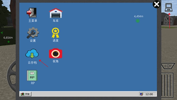8、点击右上角的电脑可以进行存档或者查看自己的车库