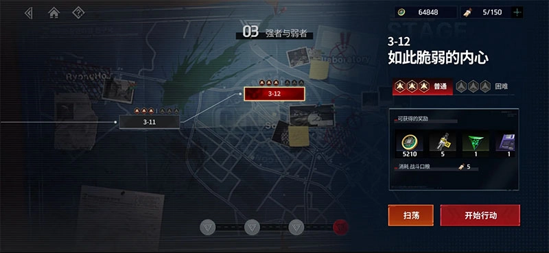 前期打不过3-12关只是因为队员等级太低,只要足够勤快地多次登录游戏,就能攒够资源。刷关建议刷普通2-12,打通3-12后再改刷困难第二章,会有额外的晶片道具和狗粮。
