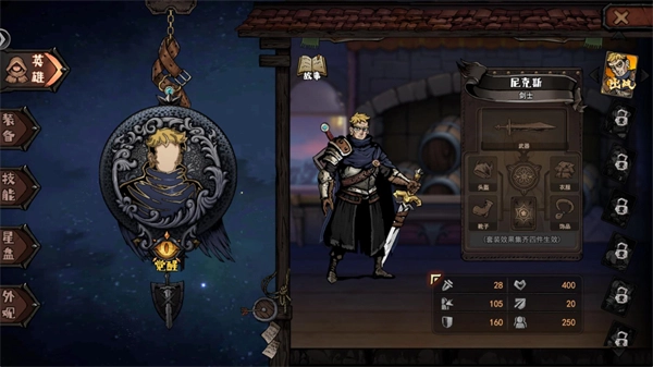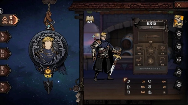 8、在主界面点击右下角的按钮可以切换不同的英雄,解锁新英雄需要收集一定数量英雄碎片前往酒馆兑换。
