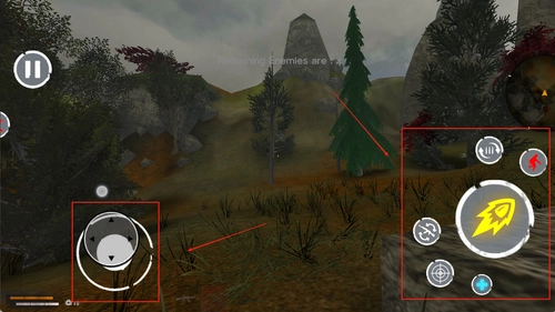 2、左侧为虚拟摇杆,右侧设有射击、跳跃和技能按钮,上方显示血量和弹药信息,便于掌握当前状态。