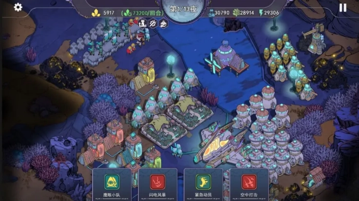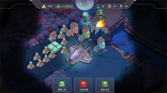 4、点击进入夜晚会开始防守,在夜晚会有大量的怪物来进攻你的基地。