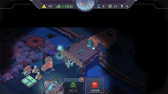 5、战斗时点击下方的卡牌可以召唤部队和释放技能,当消灭所有敌人后就可以进入白天准备下一波防守。