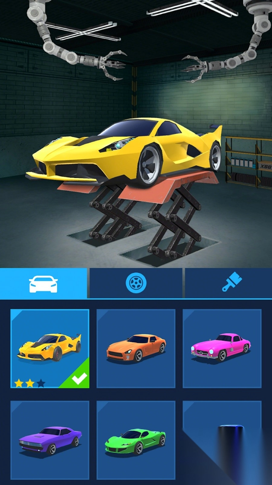 3、不断会有新的赛车登场,玩家能使用金币购买炫酷赛车,将所有喜欢的赛车放在车库中,自由进行展览。