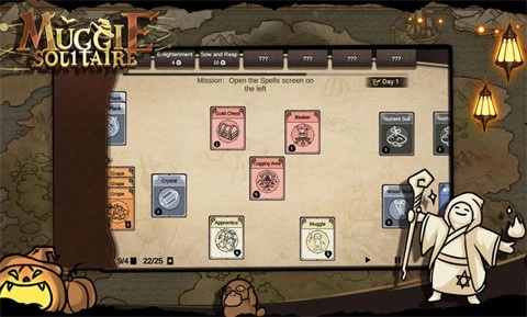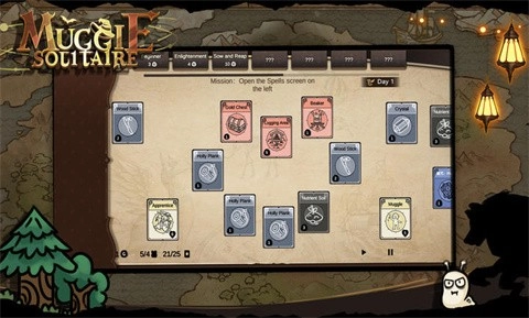 1、将麻瓜拖到植物上生产村民可以吃的食物(葡萄、芒果或其他),你可以卖掉它们卡牌获得金币,用金币购买卡包获得多张卡牌,利用这些卡牌资源拓展你的村庄。