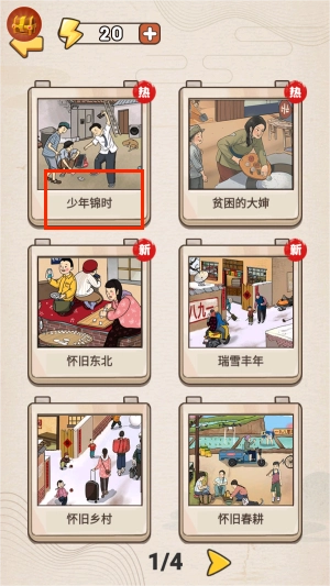 1. 开启游戏后,选择“少年锦时”怀旧模式,届时场景会展现出80年代风格的复古房间布置。