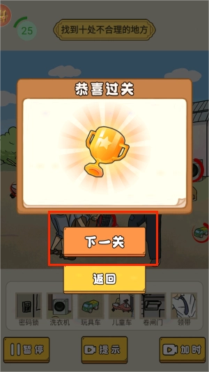 3、成功标记所有异常物品后,系统会播放庆祝动画并自动解锁更具挑战性的后续关卡。
