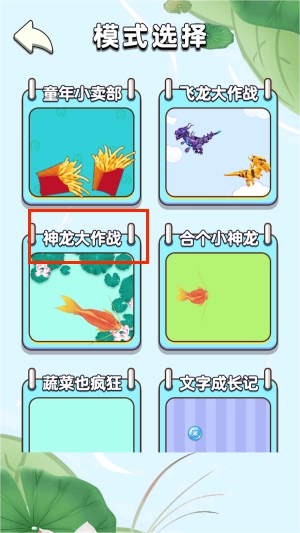 2、在模式选择栏中找到"神龙大作战"选项,点击后会出现一群待培养的小蝌蚪角色。