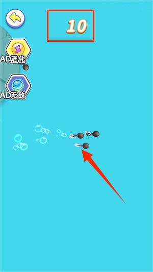 3、通过滑动屏幕控制蝌蚪群游动方向,避开障碍物的同时收集进化道具,游动时会留下动态水波纹轨迹。
