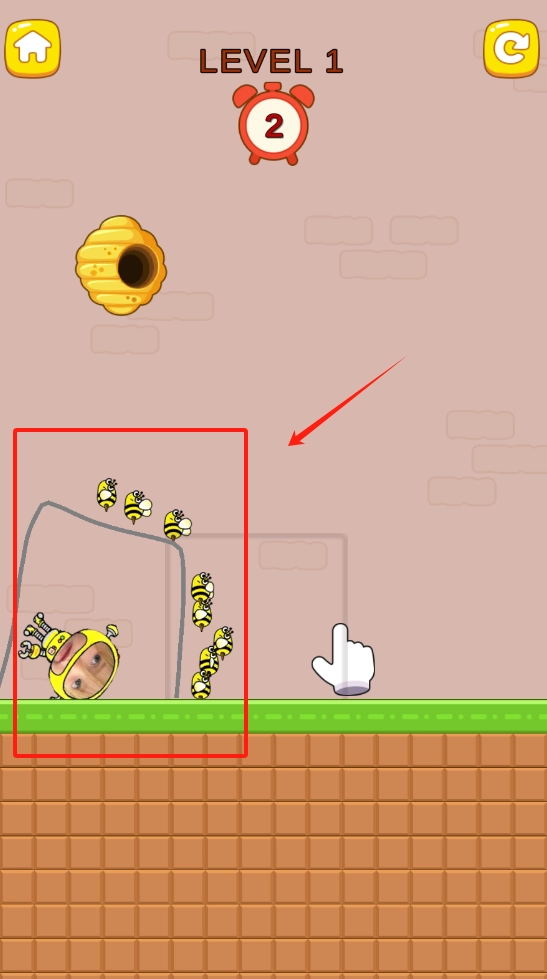 3、观察倒计时和蜜蜂动向,点击屏幕画线保护角色不被蜜蜂蜇到。
