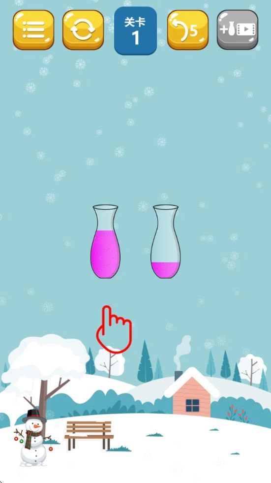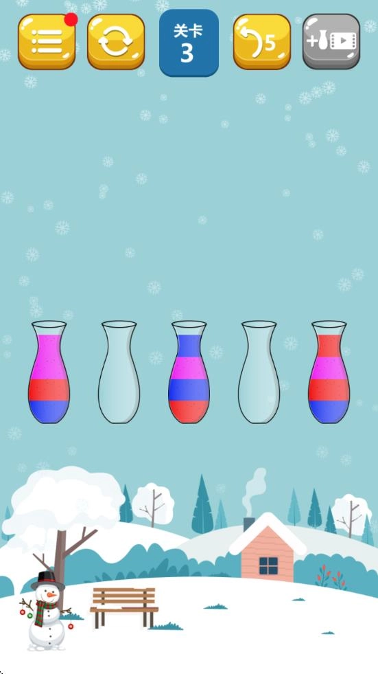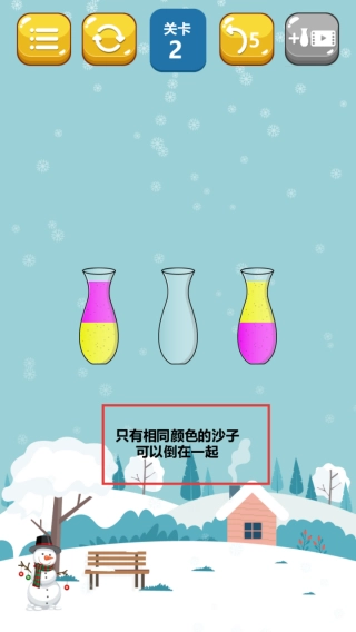 2、随机杯子和沙子颜色分布,每个关卡都是新的挑战,动脑思考进行闯关。