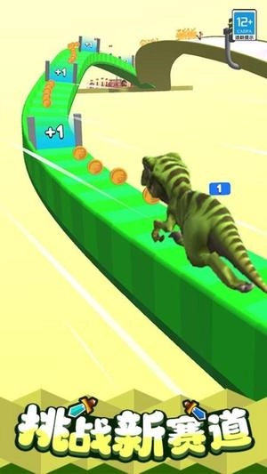 1. 开启游戏后挑选恐龙角色,通过滑动屏幕来掌控移动方向,躲开沿途的障碍物,同时收集金币与助力道具。