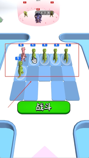 2、到达终点后进入战斗阶段,将已有恐龙进行合成升级,形成更强大的战队,迎接敌人的挑战。