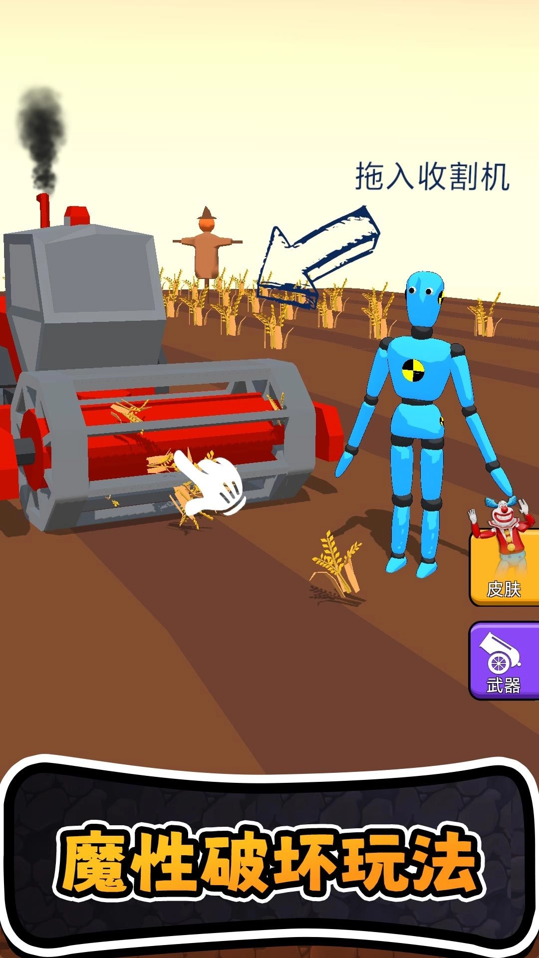 3、解锁武器道具,拖动橡皮人触发道具效果,增强破坏爽感。