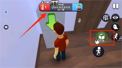 3、拖动选定角色在卧室中探索,需完成寻找哭闹婴儿并执行轻拍、哼歌等安抚动作。