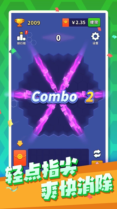 1只需轻轻用手指点击,六边形方块瞬间消除,相连成片时特效绚烂夺目,那股爽快感直接飙升至顶点。