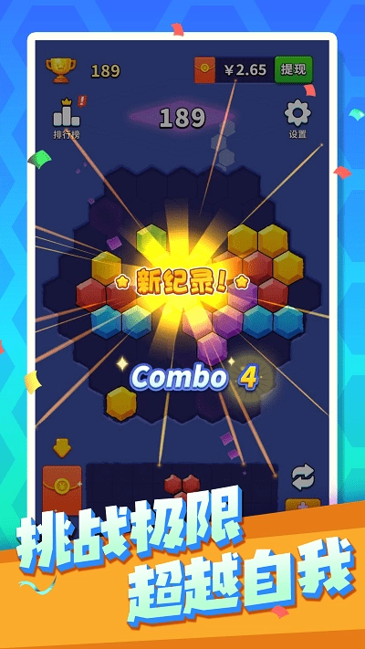 1. 创新六边形消除玩法:打破传统方块消除的固有模式,以独特的六边形拼接方式,为玩家带来前所未有的策略体验,让消除的畅快之感成倍提升。