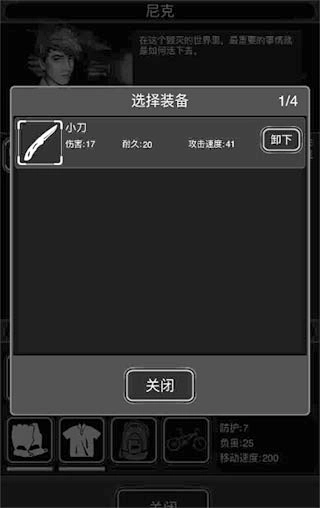 装备栏:显示你身上的装备。装备又分:武器、防具(衣服、手套)、负重及交通工具。