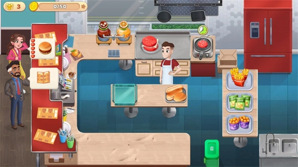 4、根据顾客的订单来为其提供对应的食物,完成订单后会在柜台上留下金币。