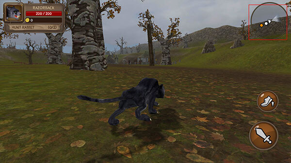 1、作为史前时期的百兽之王,玩家将操纵剑齿虎来到森林,山间,草原,冰原等地,寻找猎物。