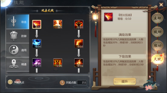 天赋技能需人物完成四转方可开启,四转之后每提升一级便能获取一个天赋点,学习天赋则要消耗一个天赋点。