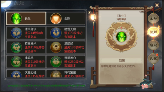 被动技能总计有17个,完成相应等级的宝鉴副本、长生宝典以及转职任务,都能够激活对应的被动技能。