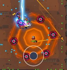 3.打法思路:弹壳特攻队游戏开局时,只要确保能选到回血无人机,就能站在回血圈里,借助无人机回血来触发腰带的紫色被动释放脉冲,再通过触发绿甲的金色被动让脉冲附带击退效果,从而实现类似轮子的作用。这样一来,前期就能实现站桩输出,后期还能搭配轮子和激光,有效阻挡兽潮的推进。