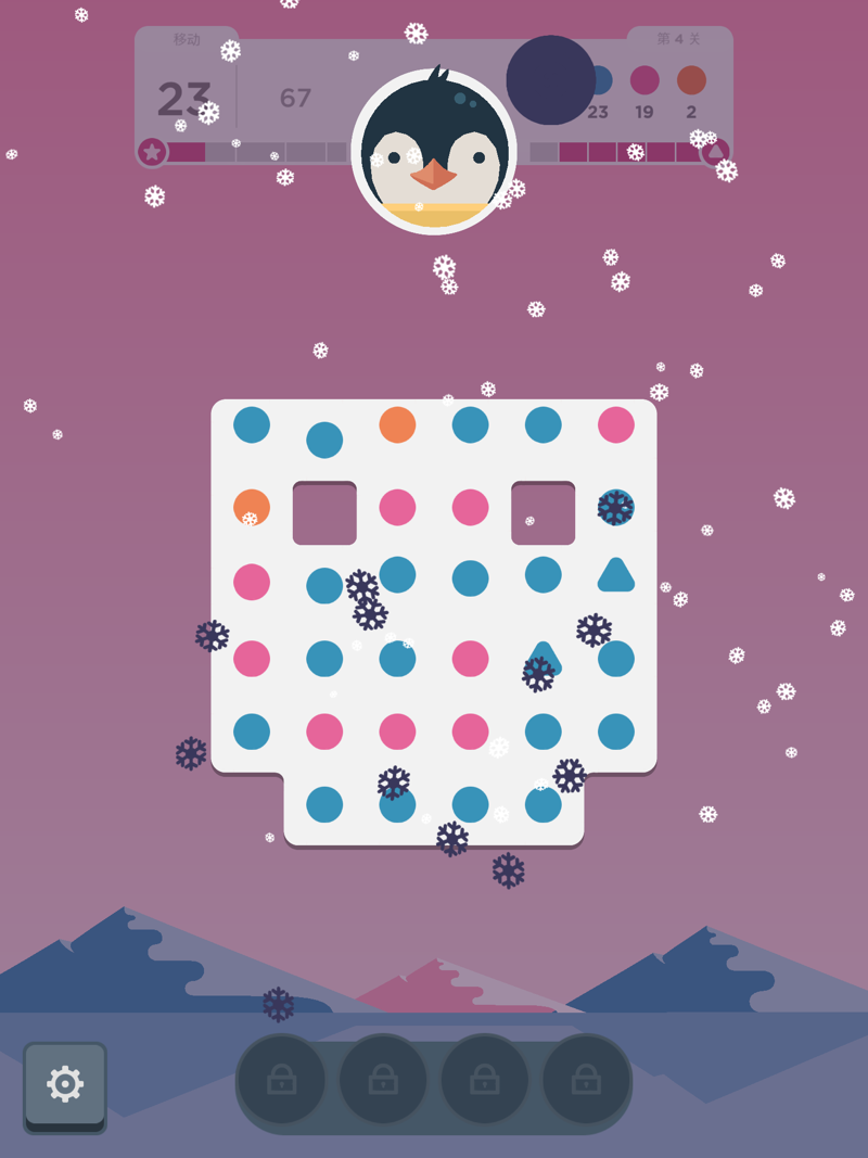 随着游戏进程的深入,玩家能通过消除三角形方块帮助伙伴安丽塔积攒能量,从而激活她的技能——这一技能能够清除某一颜色的所有点点;你还可以在挑战开始前对安丽塔进行强化,提升她积累能量的效率。