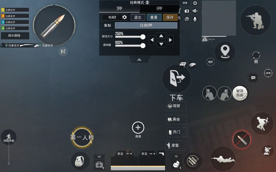 接下来要讲的是四指操作。相比三指,四指主要是增加了右上角的开镜按键,这样右手大拇指就能空出来控制左右探头,从而打出摇摆枪法。它的操作指法特点是:开镜、开火、探头和走位这一系列动作能够连贯进行,一气呵成,没有拖沓感,这正是四指操作和三指操作最显著的不同之处。