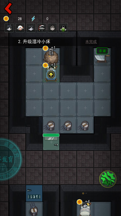要是选猛鬼(也就是猎梦者)的话,玩家得去宿舍消灭所有幸存者。但要注意,人类后期的强度特别高,所以得在前期尽快把所有人类都解决掉才能赢。猎梦者和人类的玩法有点类似,都能用得到的金币升级自己,提升血量或者攻击力。猎梦者还能解锁不同的猛鬼(现在有三种可选),每种猛鬼的技能效果和属性都不一样。要是血量不够了,得手动操控着去角落有【医疗箱】标识的地方回血,一旦被击杀这局就输了。