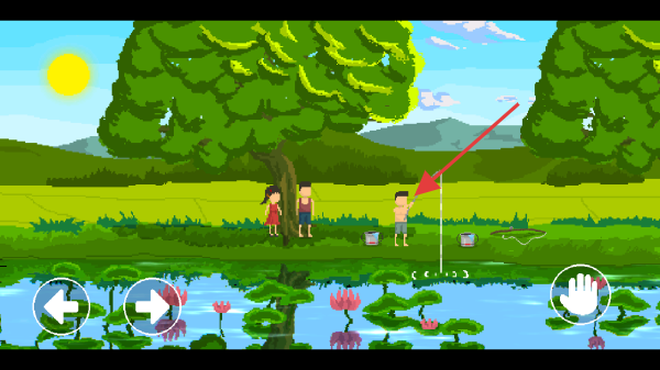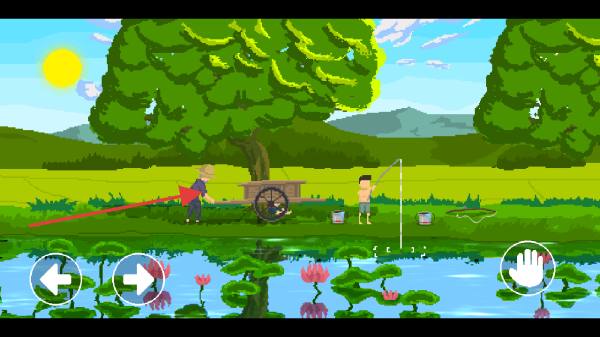 2、在钓鱼场景,操控角色与钓鱼的人互动,触发初期剧情或任务。