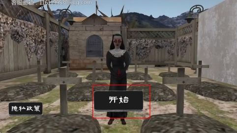 1、进入游戏,点击开始按钮,开启与修女相关的恐怖解谜冒险,进入游戏场景。