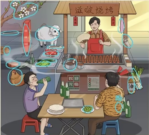 3、烤腰子:点击徐江的腰,在他开口说话的时候,把字母里的“腰”字拖到烤炉上。