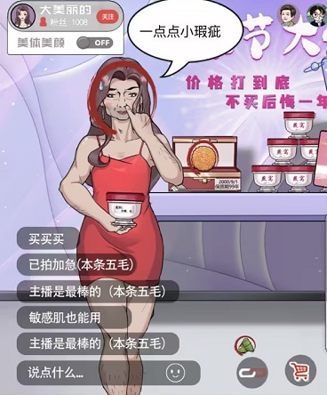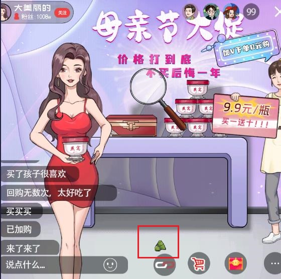 4、拖动放大镜,对月饼盒、库存仅剩的标识、9.9抢的活动区域、主播手机展示的商品、加V下单0元购的提示、买一送十的牌子以及水军弹幕进行查看使用。