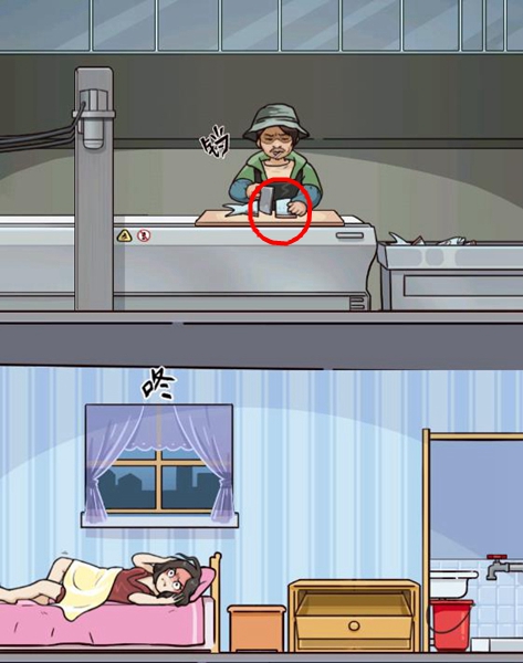 2、然后点击2楼的窗户,往左滑动,窗户会出现一个长脖女。